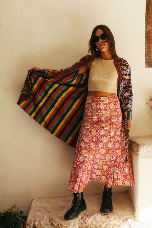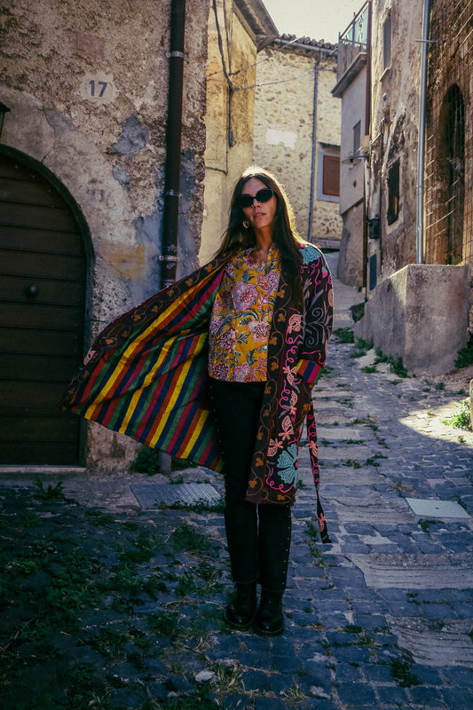 Bina Mirci è un brand Made in India nato dall'amore per questo Paese e la sua ricchezza tessile: in hindi, Bina Mirci significa "senza piccante"!