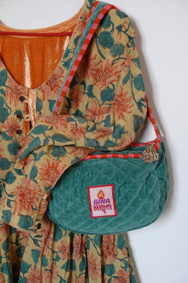 - esterno 100% viscosa di velluto, interno 100% cotone block print