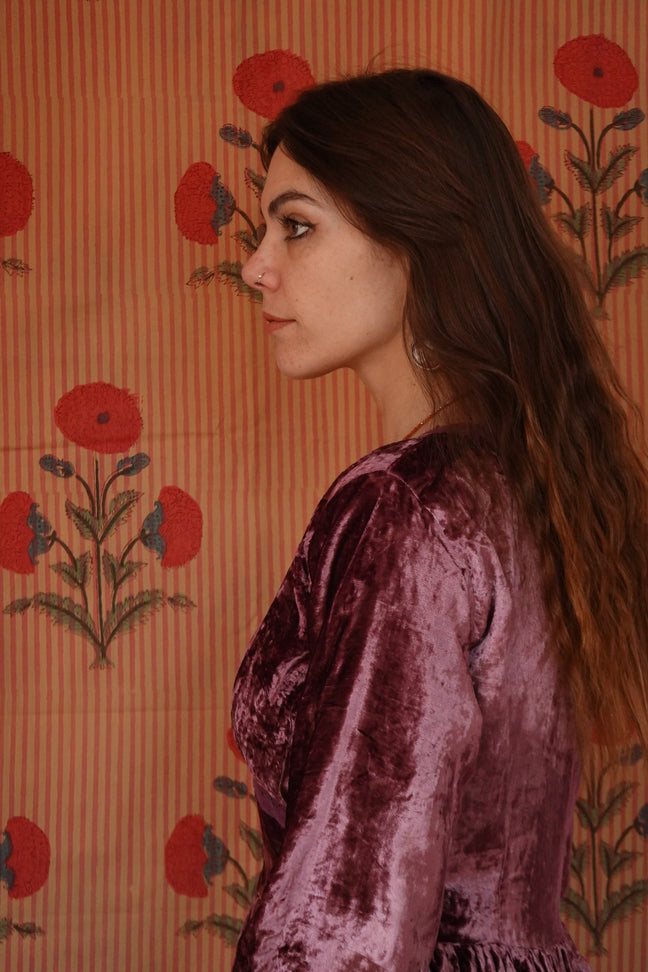 - esterno 100% viscosa di velluto, interno 100% cotone block print