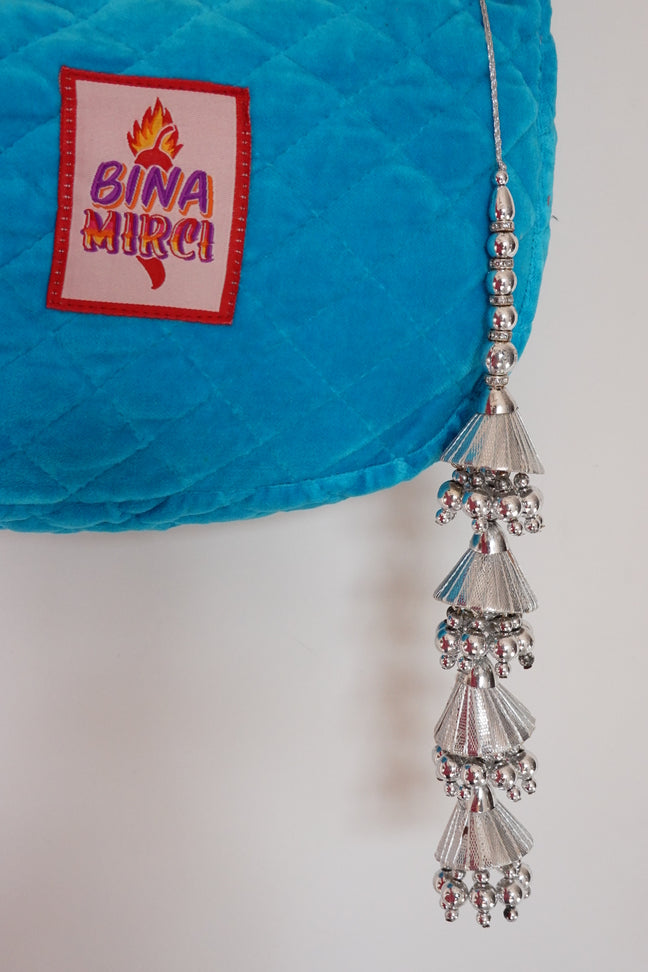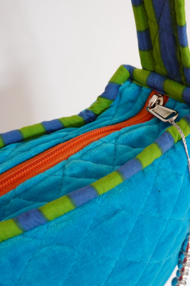 La zip è impreziosita da un letkan: qui in india si utilizzano per abbellire gonne e blouse, e danno un tocco in più alla borsa :)