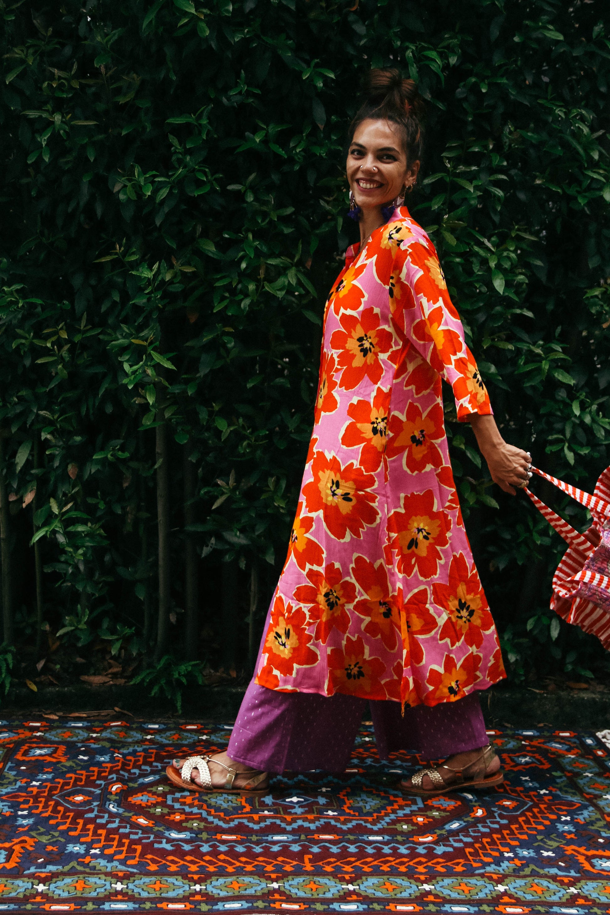 Il completo Leela è ispirato agli abiti che indossano ogni giorno le donne indiane, i salwar kameez, composti da un camicione lungo, il kurti, e un pantalone da indossarci sempre sotto!