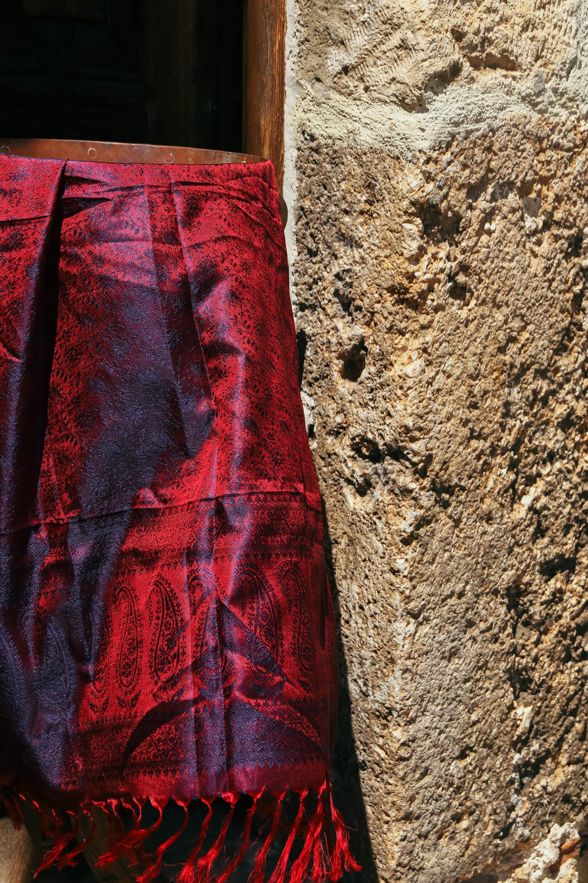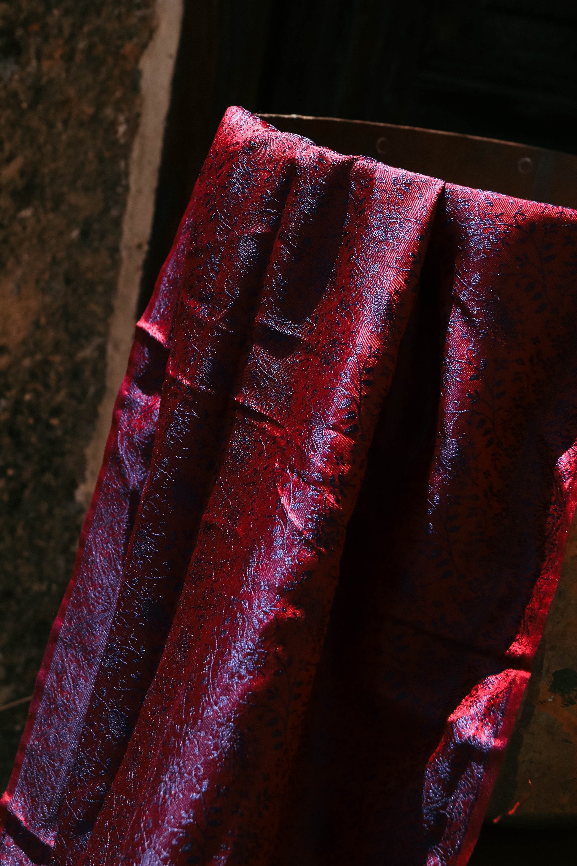 Un capolavoro di artigianalità, questi foulard sono stati interamente tessuti a mano: la purissima seta di cui sono fatti nasce fra i vicoli di uno dei quartieri mussulmani di Varanasi, dove la tradizione della tessitura con il telaio manuale jacquard viene tramandata di generazione in generazione.