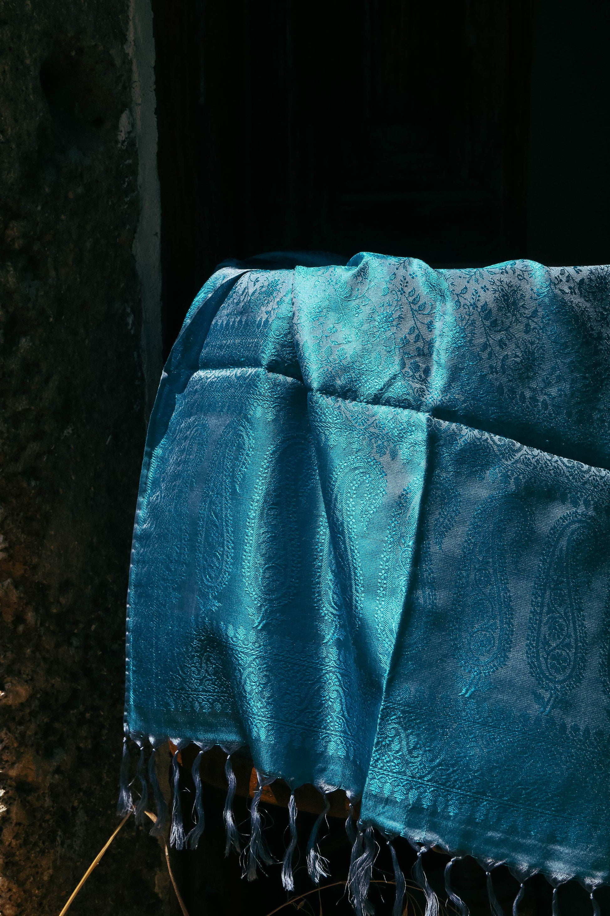 Un capolavoro di artigianalità, questi foulard sono stati interamente tessuti a mano: la purissima seta di cui sono fatti nasce fra i vicoli di uno dei quartieri mussulmani di Varanasi, dove la tradizione della tessitura con il telaio manuale jacquard viene tramandata di generazione in generazione.