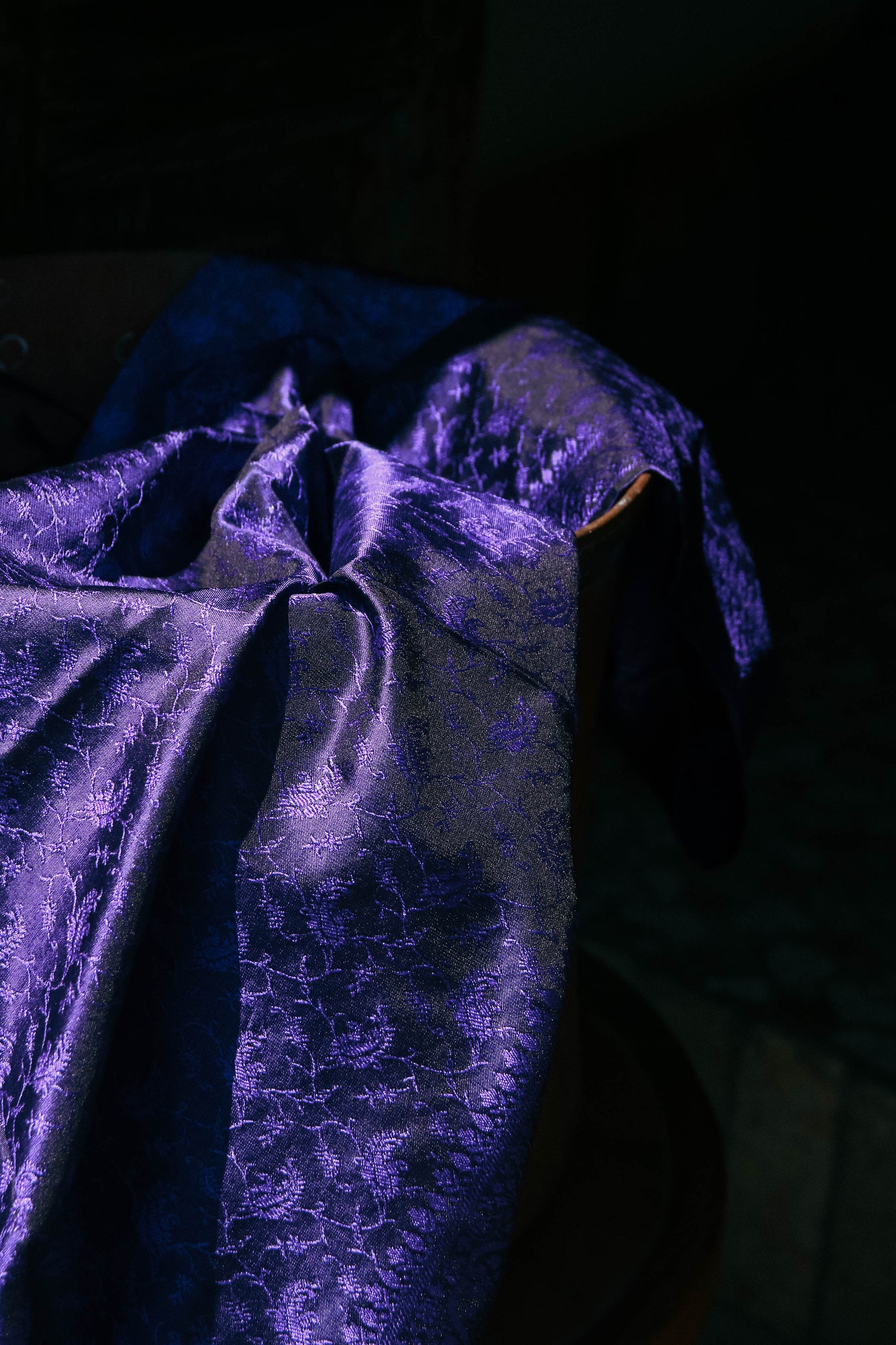 Un capolavoro di artigianalità, questi foulard sono stati interamente tessuti a mano: la purissima seta di cui sono fatti nasce fra i vicoli di uno dei quartieri mussulmani di Varanasi, dove la tradizione della tessitura con il telaio manuale jacquard viene tramandata di generazione in generazione.