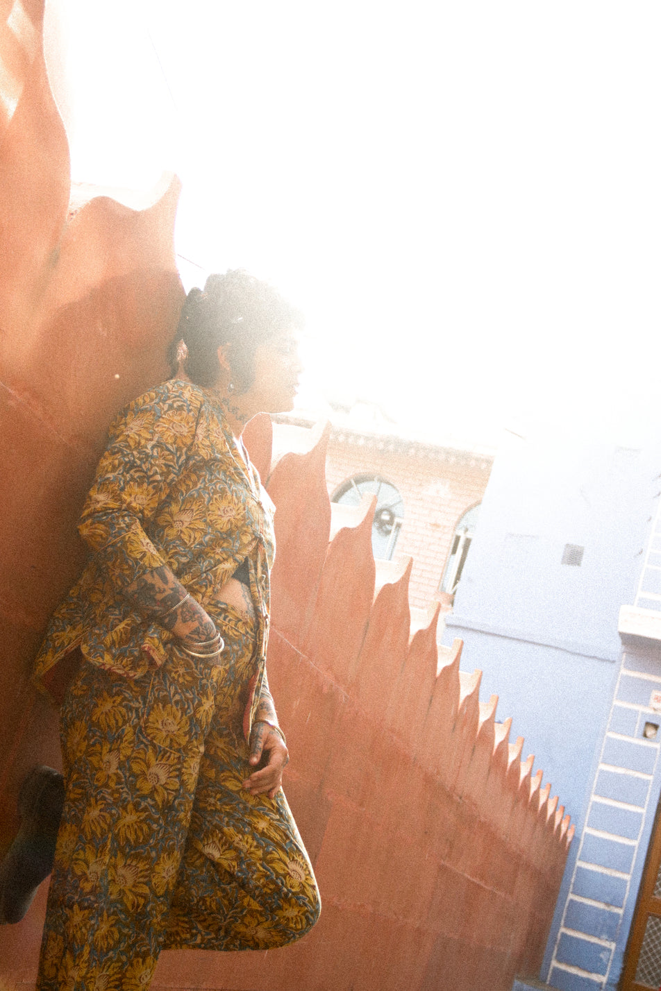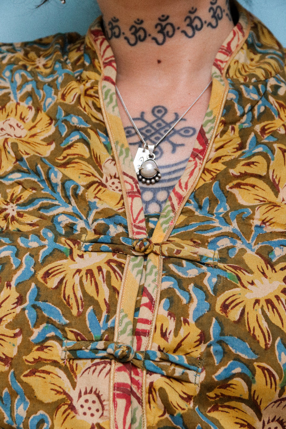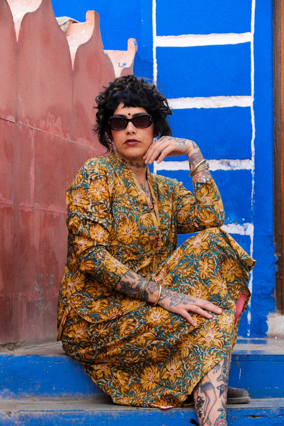È realizzata in cotone 100% stampato a mano con la tecnica block print e, essendo il tessuto completamente artigianale, potrebbero esserci delle irregolarità nella stampa: è la peculiarità e bellezza del fatto a mano!