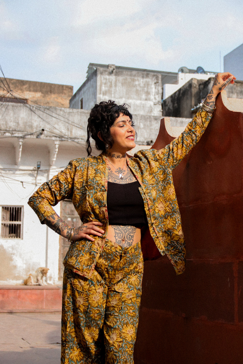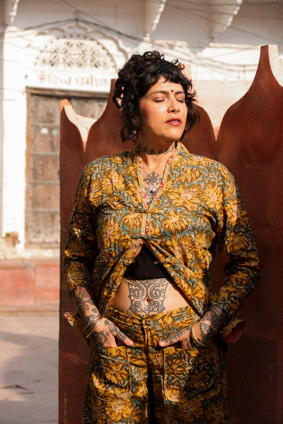Se vuoi creare un completo, dai uno sguardo ai Pantaloni Nimbu e alle Gonne Nimbu: ne troverai alcune/i con le stesse stampe e altre con stampe diverse, ma pensate/i comunque per essere abbinabili alle giacche! Anche le Borse Kushi sono perfette da abbinarci :)