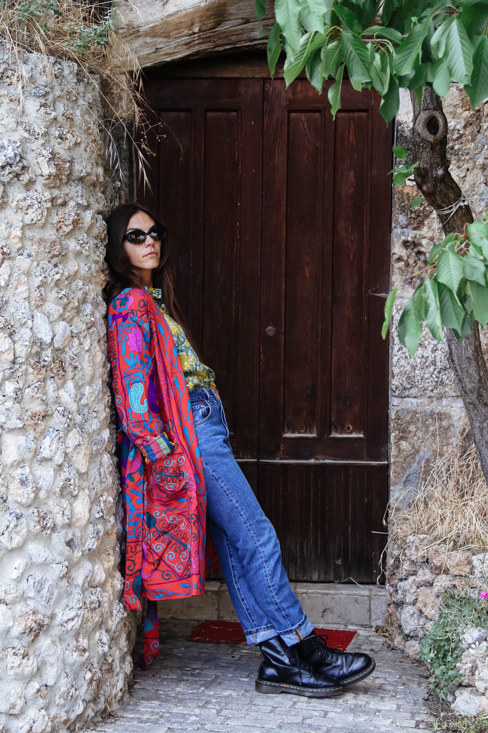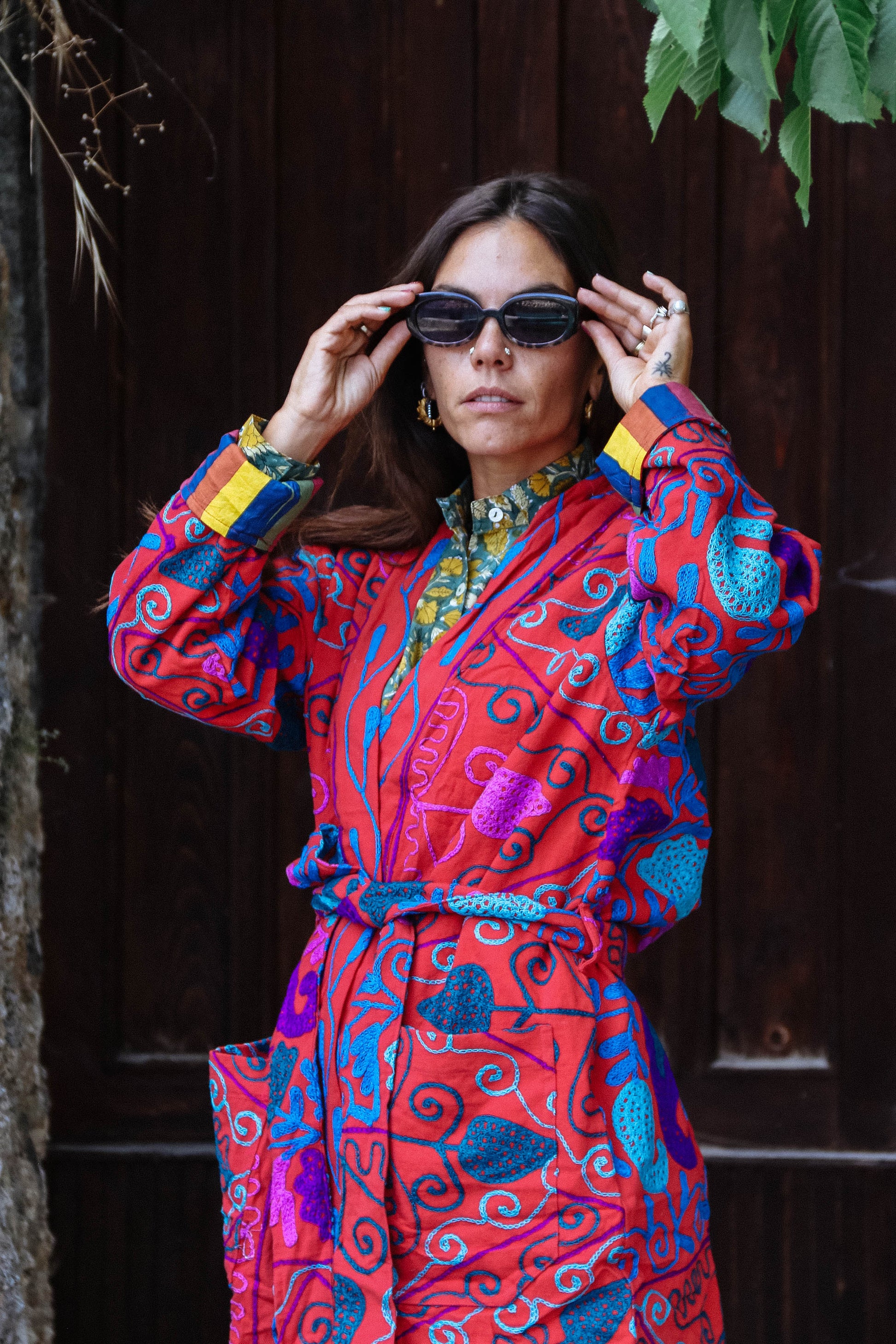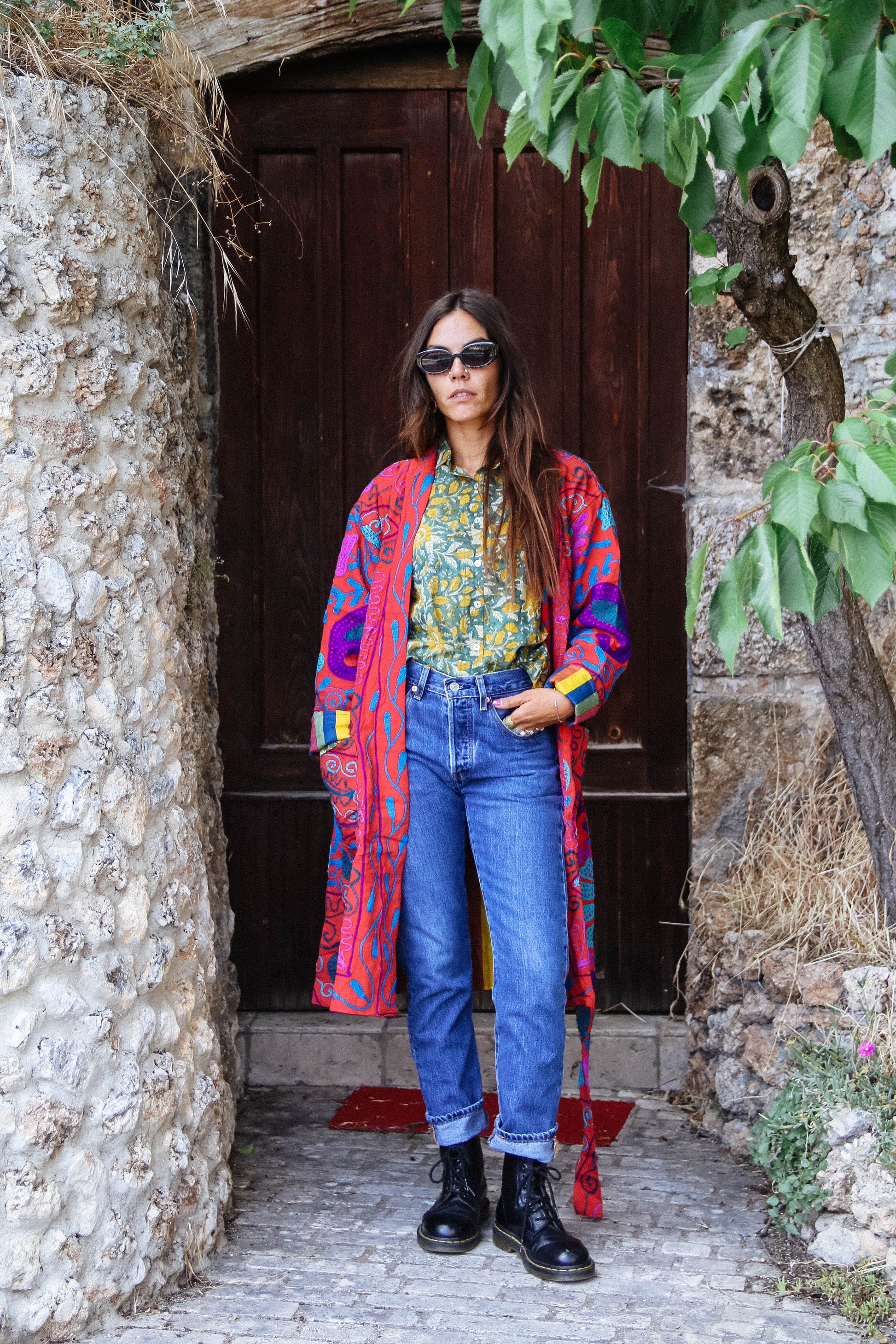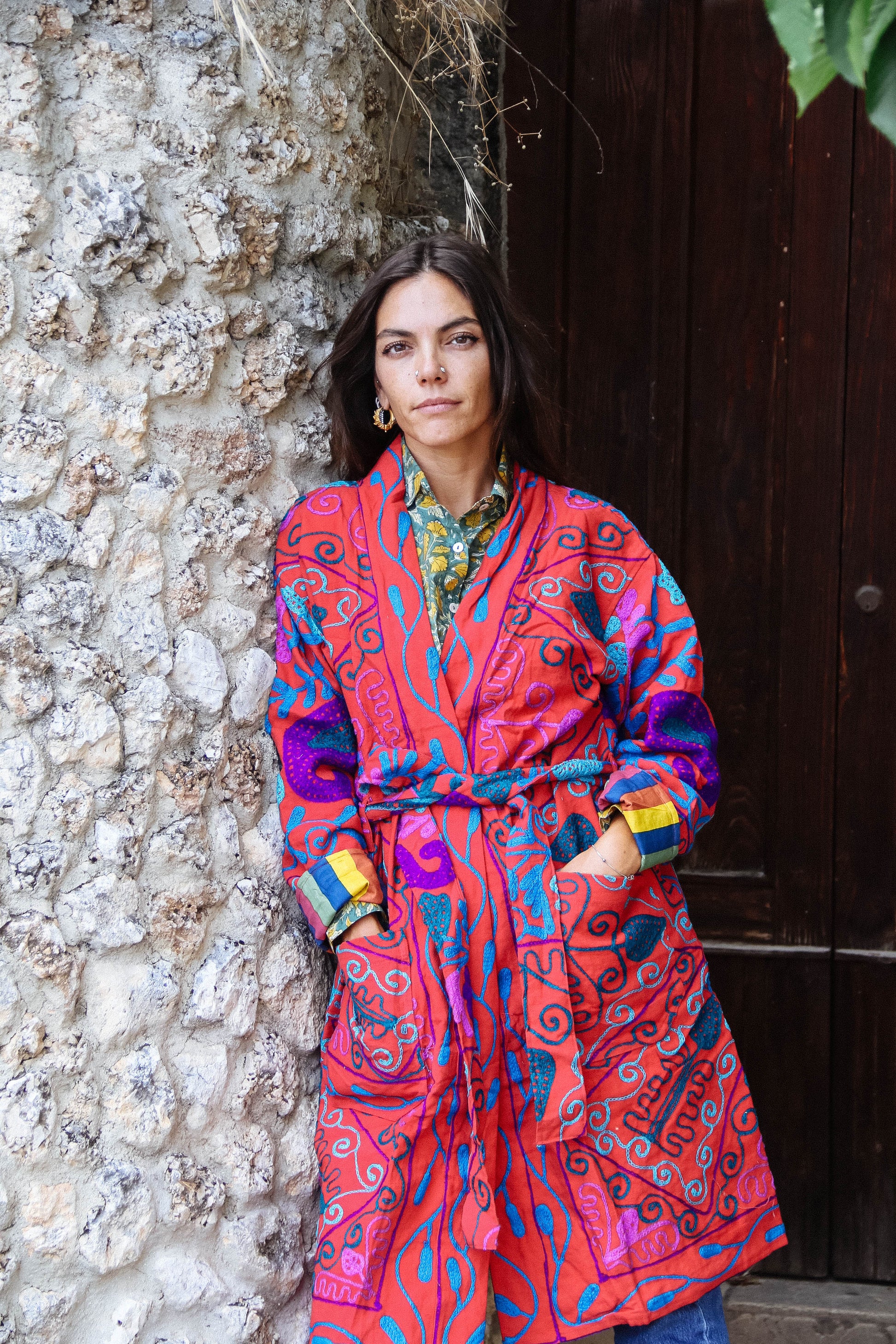 I tessuti che abbiamo utilizzato per creare queste giacche, infatti, sono in realtà dei copriletto: ogni pezzo è unico! La vestibilità è molto comoda, la giacca non prevede bottoni ma una cintura fatta dello stesso tessuto.
