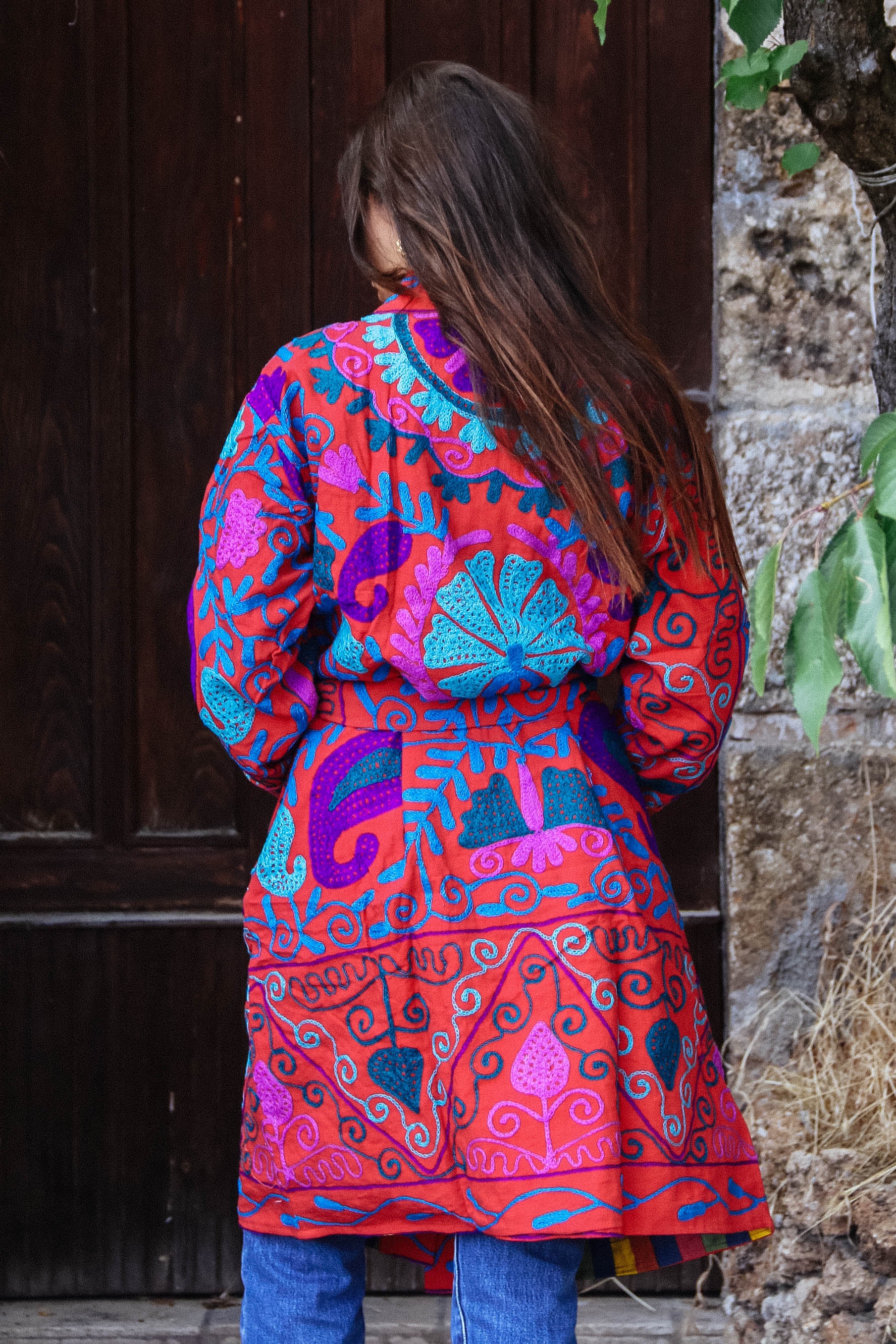 Il suzani è un tipo di ricamo tribale tradizionale dell'Asia centrale, in particolare Uzbekistan e Tagikistan, caratterizzato principalmente da disegni con elementi floreali e da colori vivaci e brillanti.