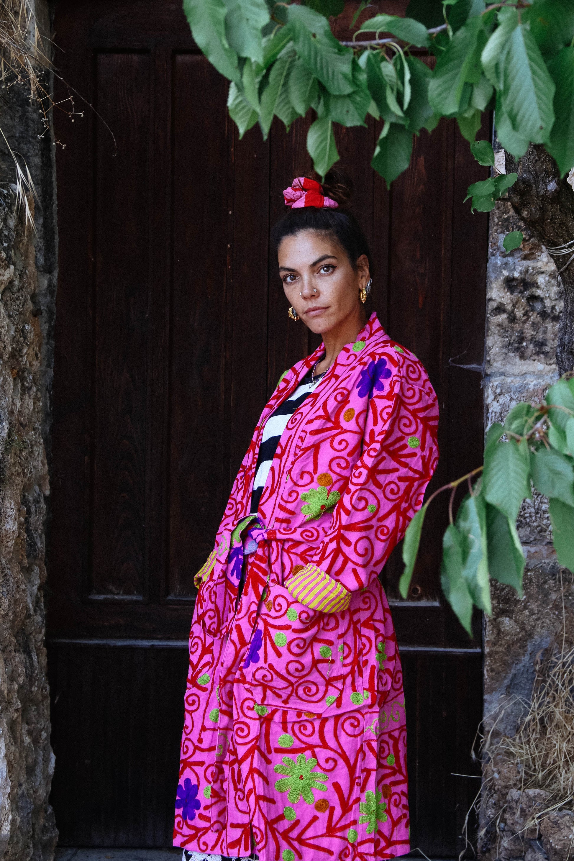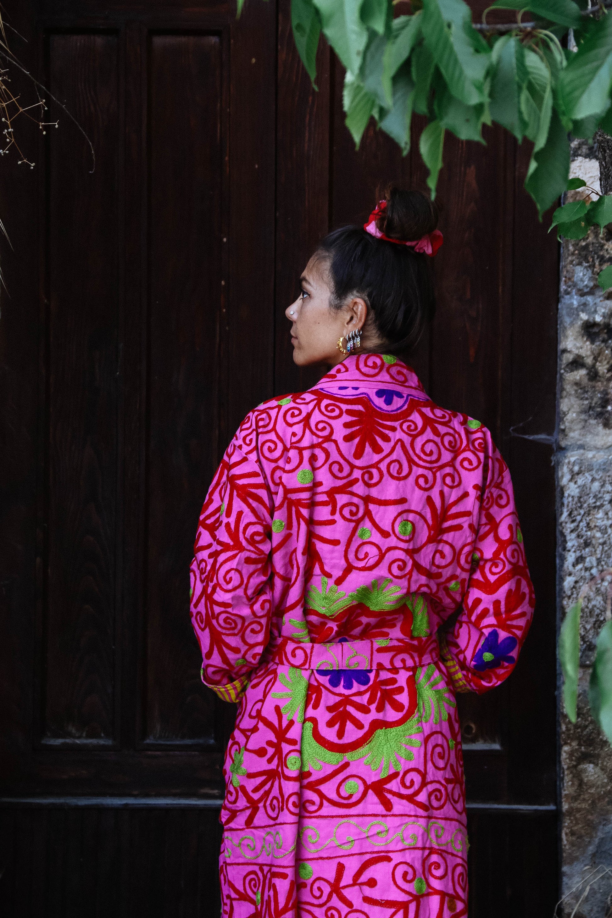 I tessuti che abbiamo utilizzato per creare queste giacche, infatti, sono in realtà dei copriletto: ogni pezzo è unico! La vestibilità è molto comoda, la giacca non prevede bottoni ma una cintura fatta dello stesso tessuto.