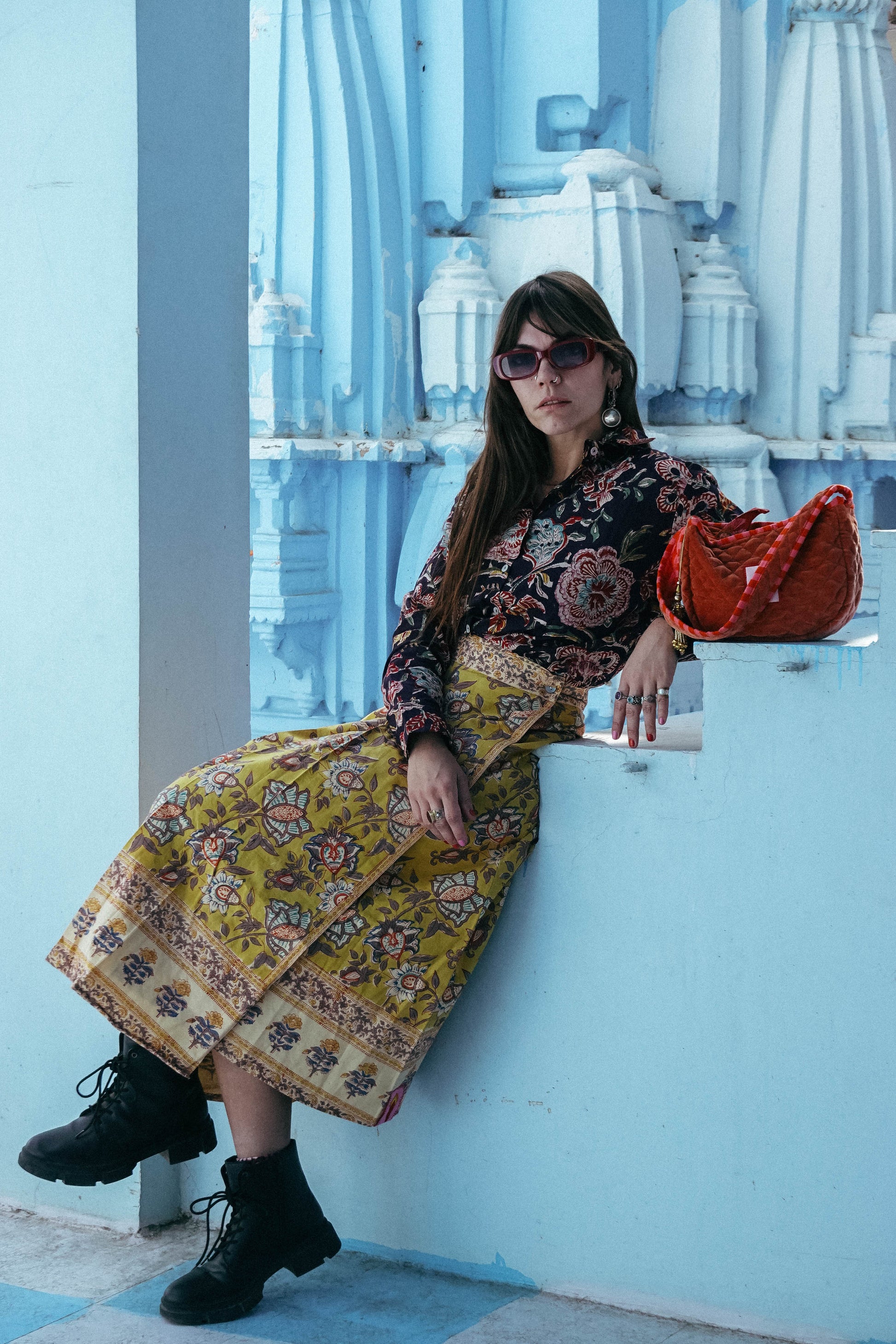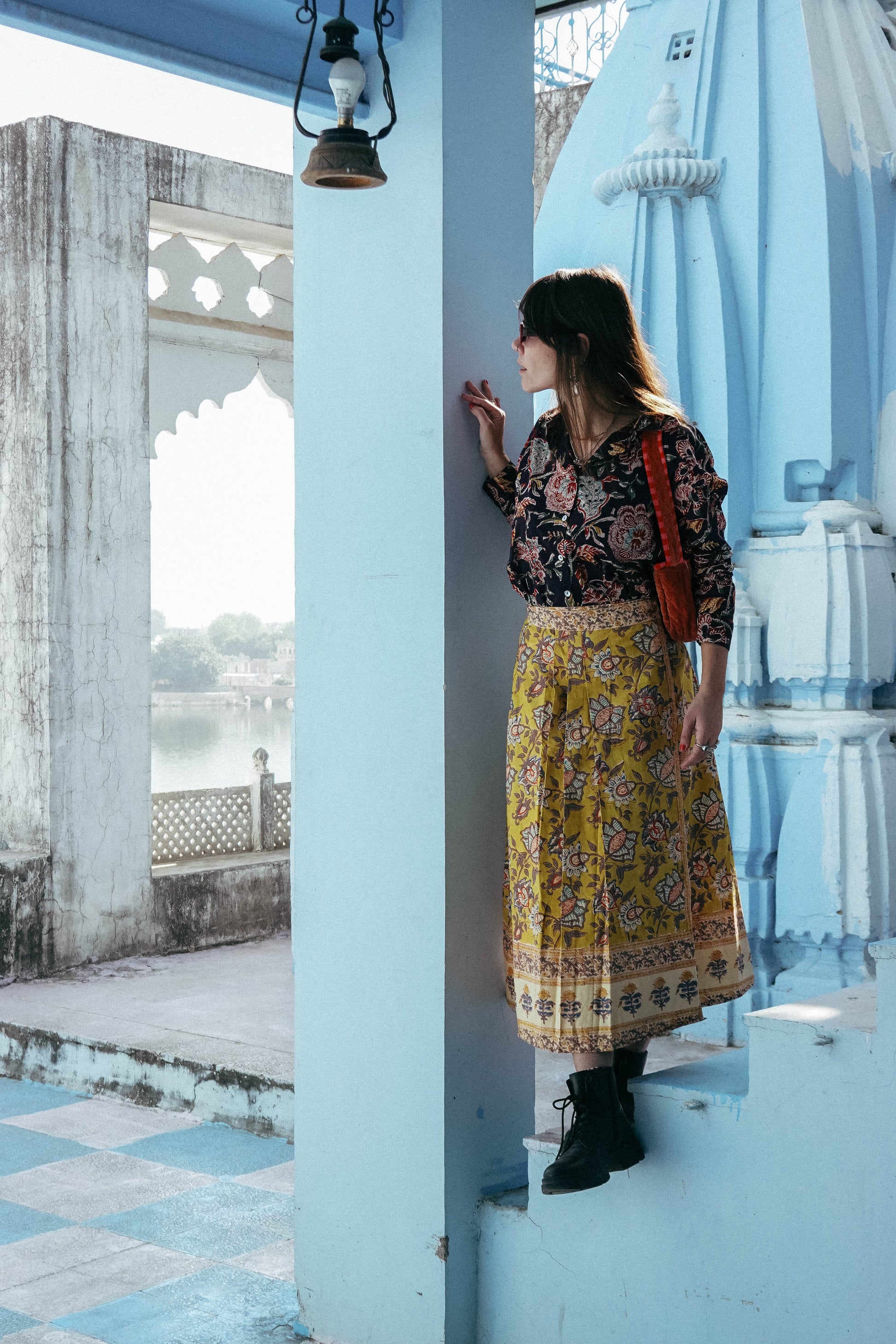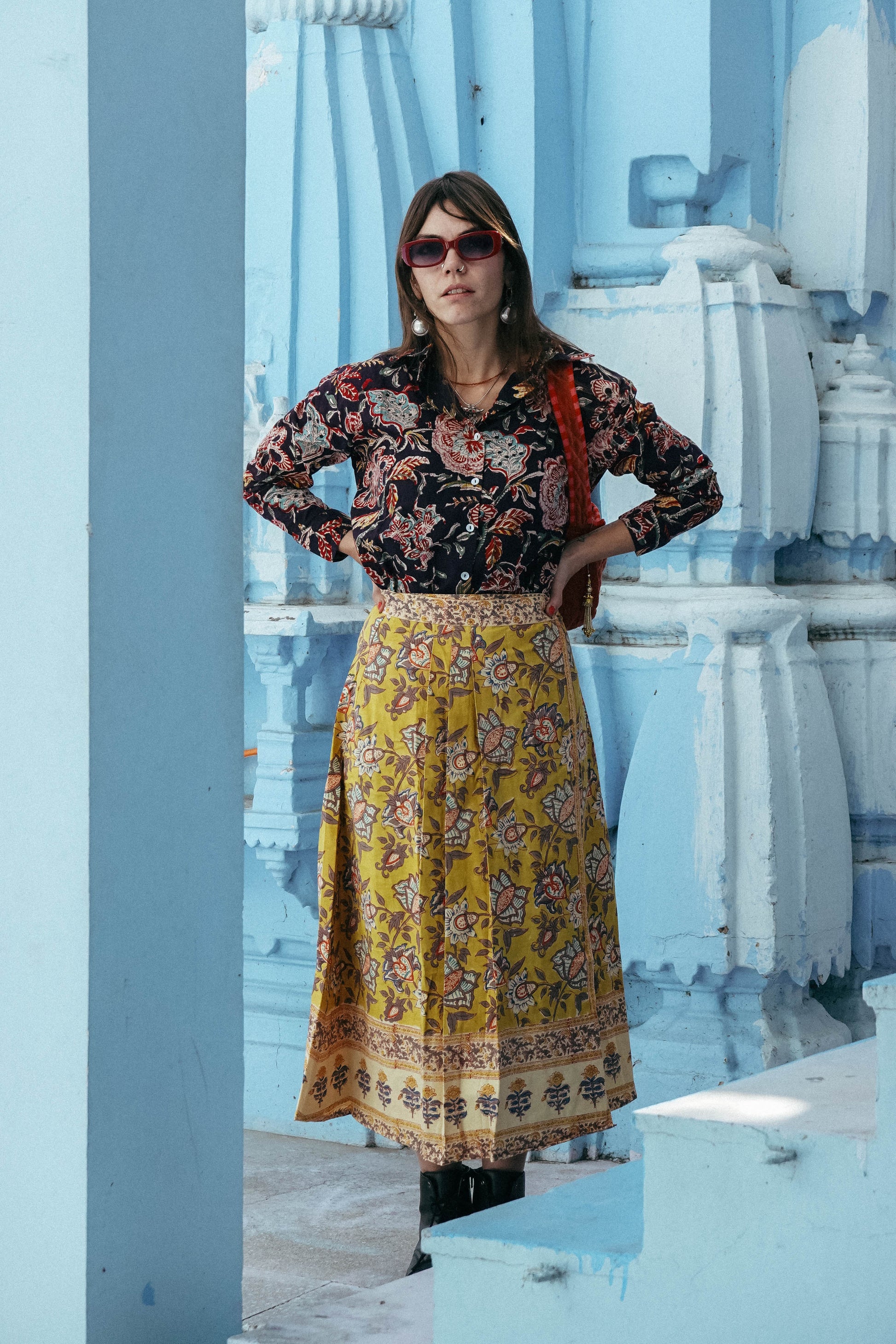 La gonna Mayur è pensata per poter essere indossata sia con climi più freddi che con climi più caldi: è infatti realizzata in cotone block print più spesso e sostenuto del normale cotone, così ti basterà indossarla con i collant per renderla più adatta alle temperature invernali, oppure senza niente nelle stagioni più calde :)