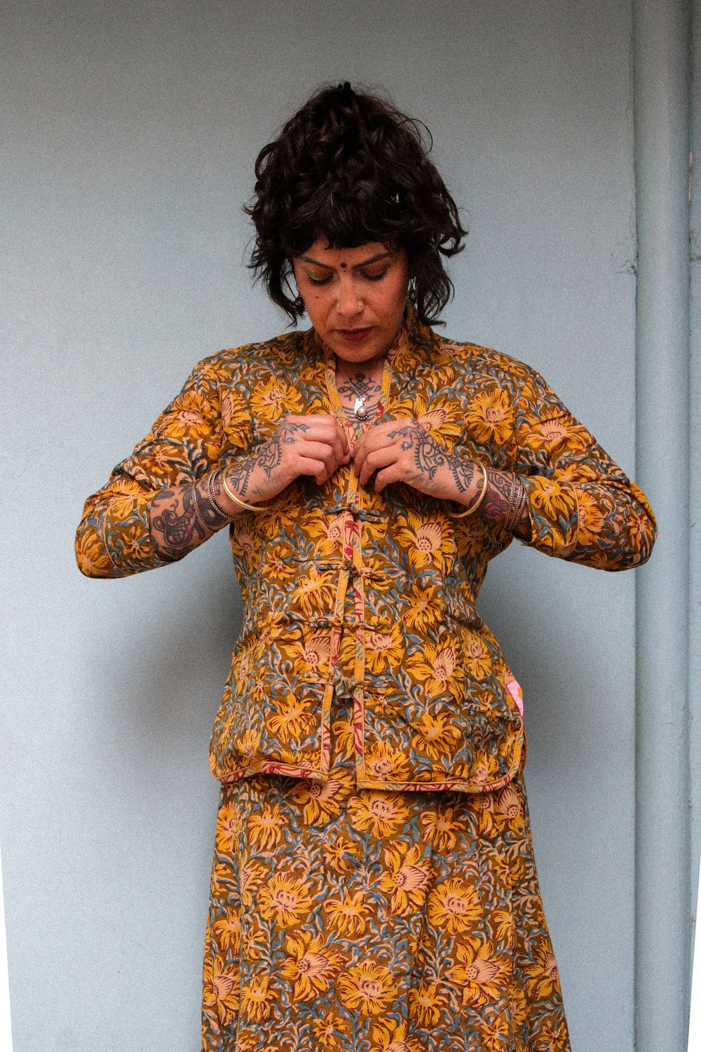 Se vuoi creare un completo, dai uno sguardo alle Giacche Nimbu: ne troverai alcune con le stesse stampe e altre con stampe diverse ma pensate comunque per essere abbinabili alle gonne. Altrimenti, se cerchi altro da abbinarci che sia più leggero, puoi dare uno sguardo alle Camicie Padma, le Camicie Vasant o le Camicie Aisha. Last but not least, anche le Borse Kushi sono perfette da abbinare a queste gonne :)