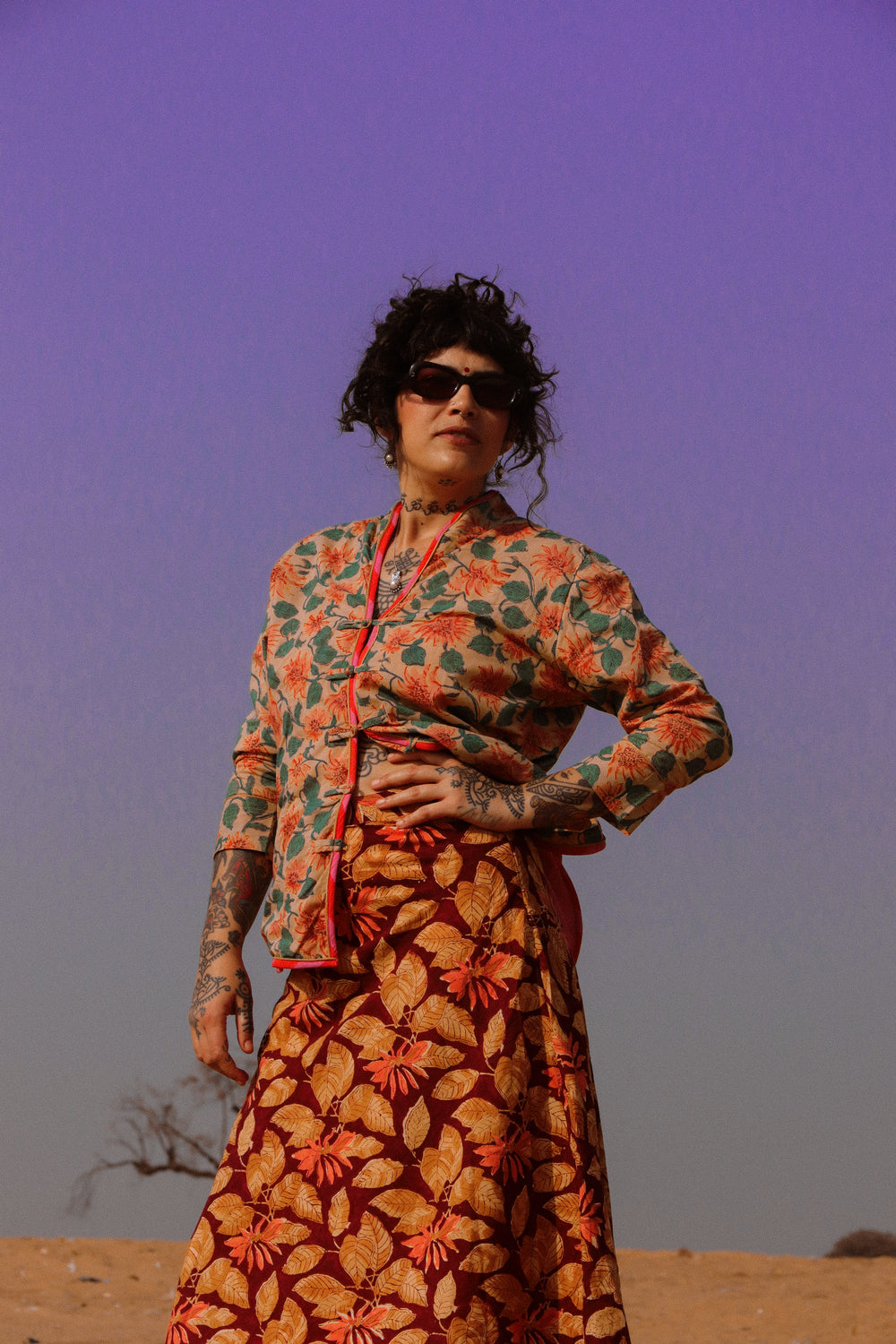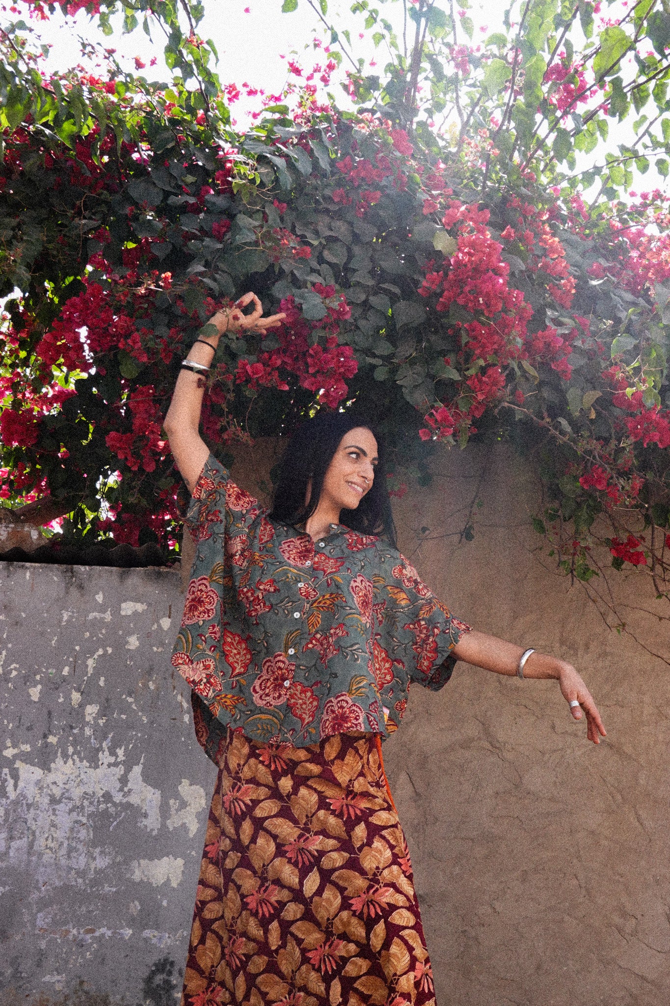 Se vuoi creare un completo, dai uno sguardo alle Giacche Nimbu: ne troverai alcune con le stesse stampe e altre con stampe diverse ma pensate comunque per essere abbinabili alle gonne. Altrimenti, se cerchi altro da abbinarci che sia più leggero, puoi dare uno sguardo alle Camicie Padma, le Camicie Vasant o le Camicie Aisha. Last but not least, anche le Borse Kushi sono perfette da abbinare a queste gonne :)