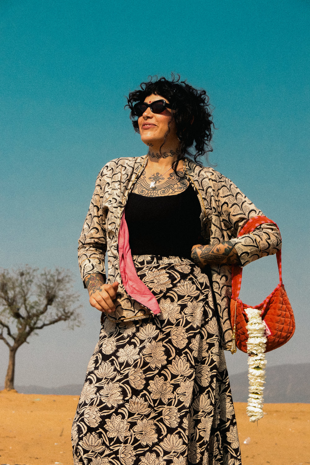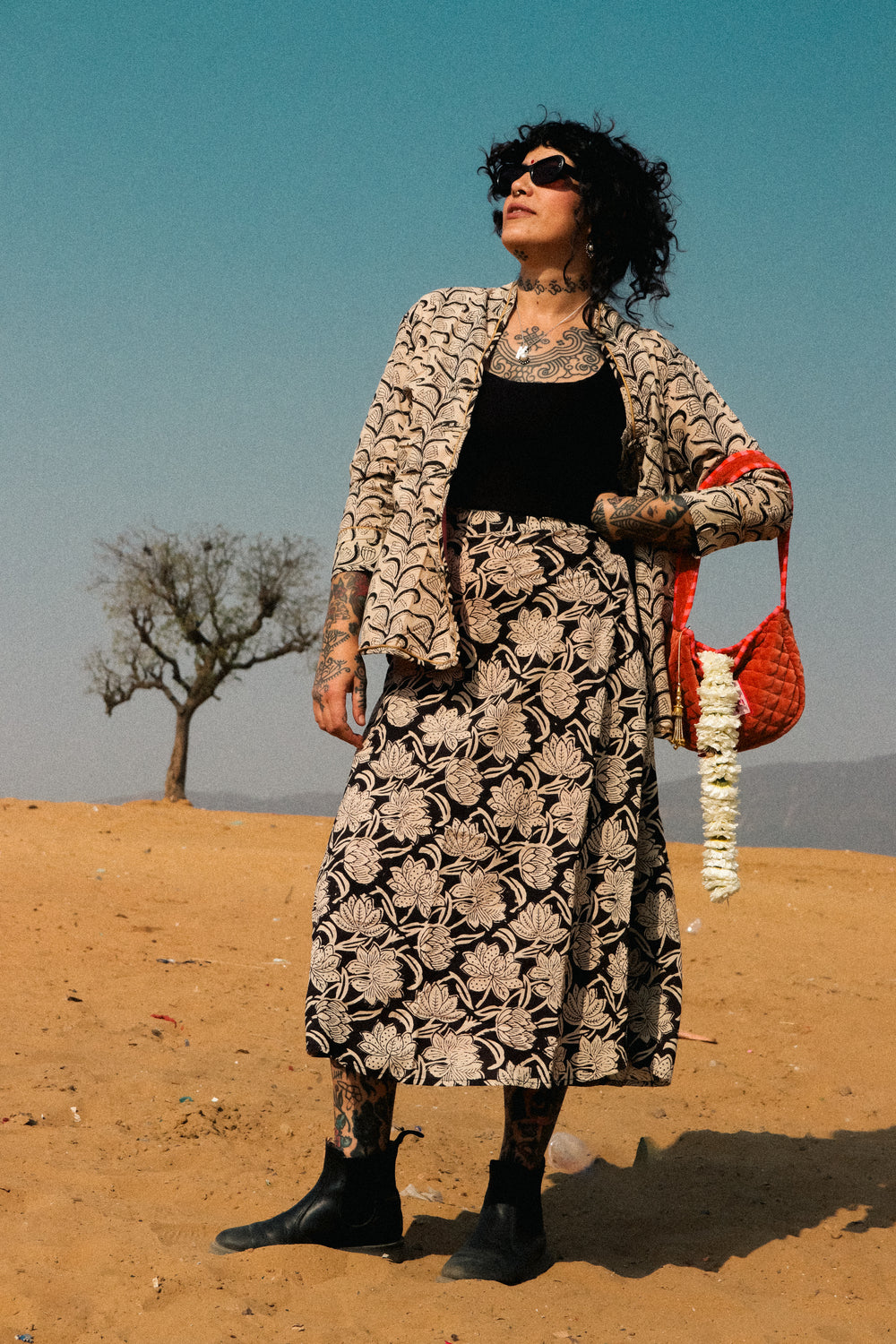 Se vuoi creare un completo, dai uno sguardo alle Giacche Nimbu: ne troverai alcune con le stesse stampe e altre con stampe diverse ma pensate comunque per essere abbinabili alle gonne. Altrimenti, se cerchi altro da abbinarci che sia più leggero, puoi dare uno sguardo alle Camicie Padma, le Camicie Vasant o le Camicie Aisha. Last but not least, anche le Borse Kushi sono perfette da abbinare a queste gonne :)