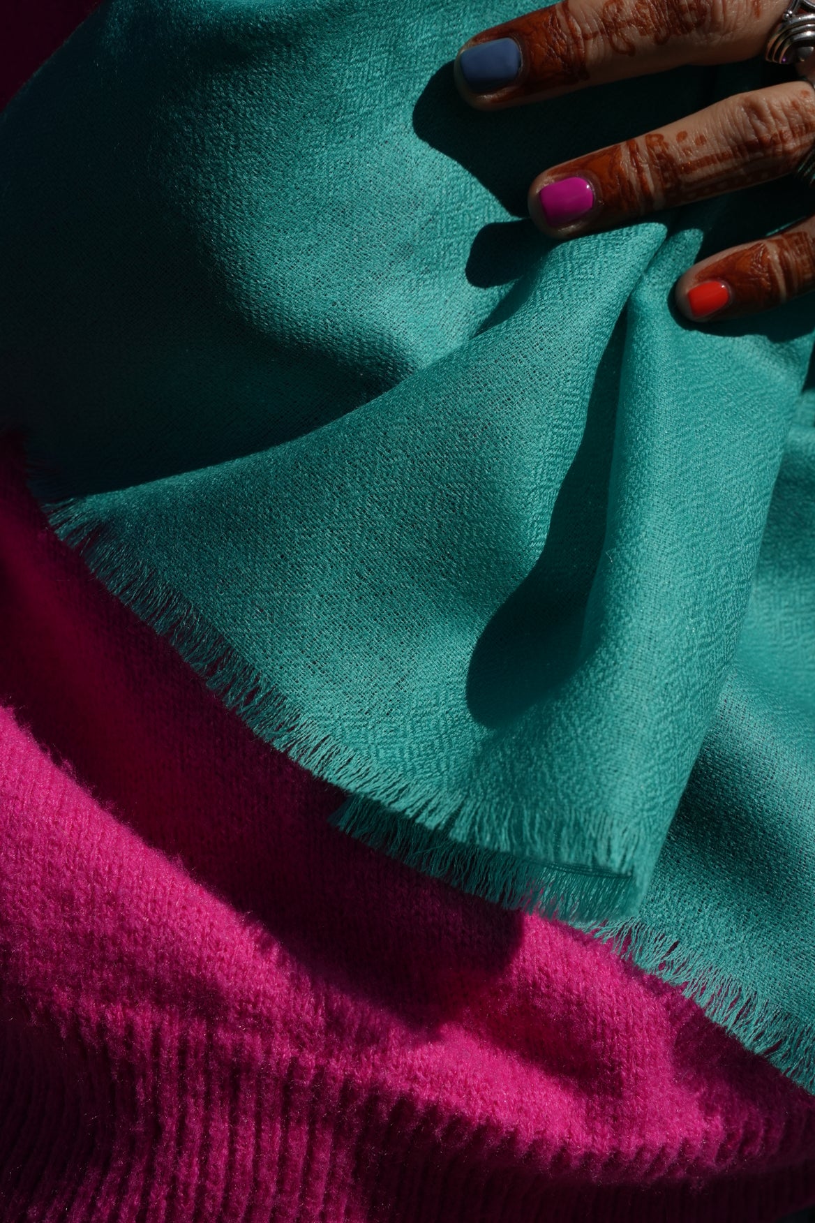 Calde, colorate e morbidissime: le nostre sciarpe sono made in Ladakh, sull'Himalaya, e sono 100% lana di pecore locali.